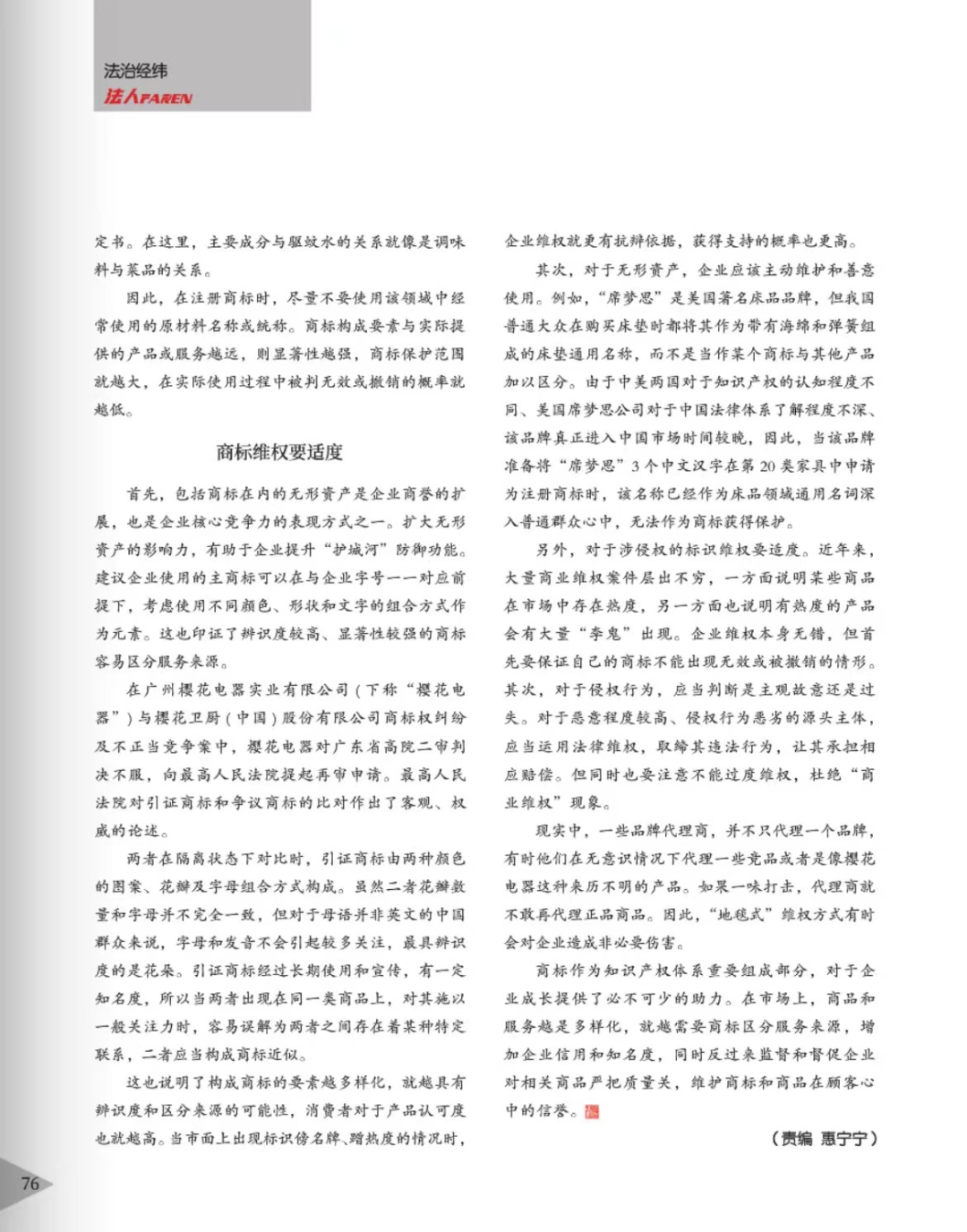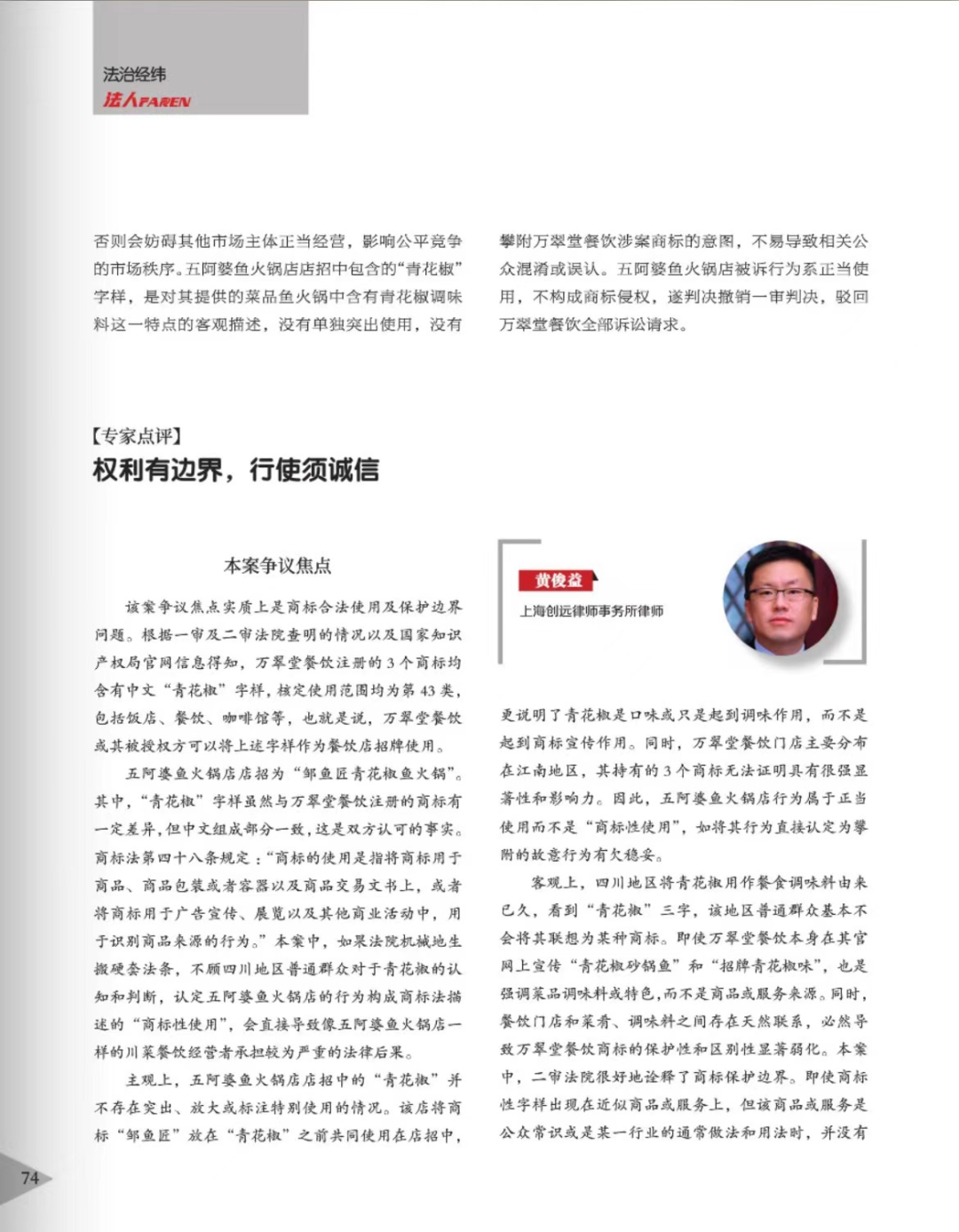 洛阳辉知简讯 | 辉知队黄俊益律师应“法治日报”旗下杂志邀请,就“青花椒”案发表专家点评